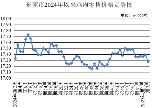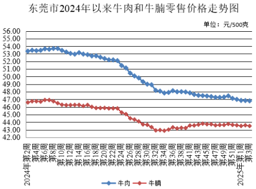 第3周,牛肉農(nóng)貿(mào)市場(chǎng)零售均價(jià)為每500克46.80元,較上周下降0.09%。牛腩農(nóng)貿(mào)市場(chǎng)零售均價(jià)為每500克43.50元,較上周下降0.21%。雞肉農(nóng)貿(mào)市場(chǎng)零售均價(jià)為每500克17.27元,較上周下降0.69%。