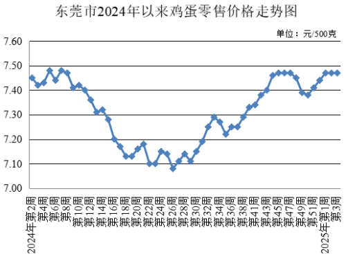 第3周,雞蛋農(nóng)貿(mào)市場(chǎng)零售均價(jià)為每500克7.47元,與上周持平。