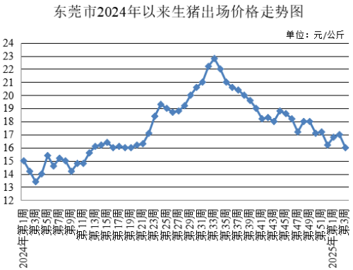第3周,生豬出場(chǎng)價(jià)格為每公斤16元,較上周下降5.88%???cè)馀l(fā)均價(jià)為每500克12.65元,較上周下降4.89%。