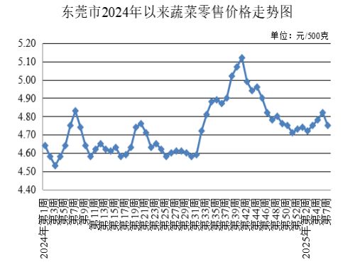 第7周,監(jiān)測的30種蔬菜農(nóng)貿(mào)市場零售均價為每500克4.75元,較上周下降1.45%。其中,13種葉菜類農(nóng)貿(mào)市場零售均價為每500克4.83元,較上周下降1.63%;17種非葉菜類農(nóng)貿(mào)市場零售均價為每500克4.68元,較上周下降1.47%。