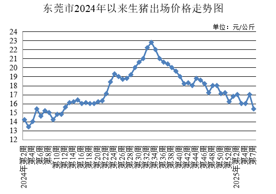 第7周,監(jiān)測的生豬出場價格為每公斤15.40元,較上周下降9.41%???cè)馀l(fā)均價為每500克12.30元,較上周下降1.60%。