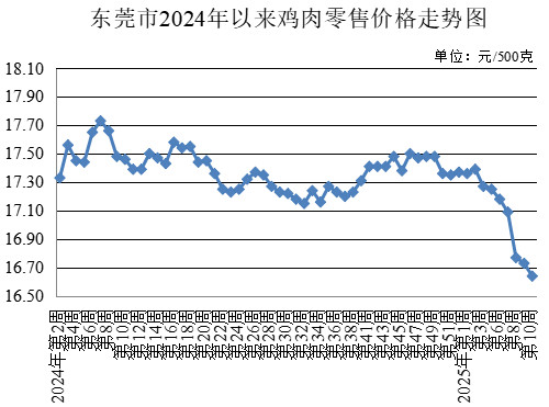 第10周,所監(jiān)測的牛肉農(nóng)貿(mào)市場零售均價為每500克46.64元,較上周上升0.11%。牛腩農(nóng)貿(mào)市場零售均價為每500克43.08元,較上周下降0.02%。雞肉農(nóng)貿(mào)市場零售均價為每500克16.64元,較上周下降0.54%。
