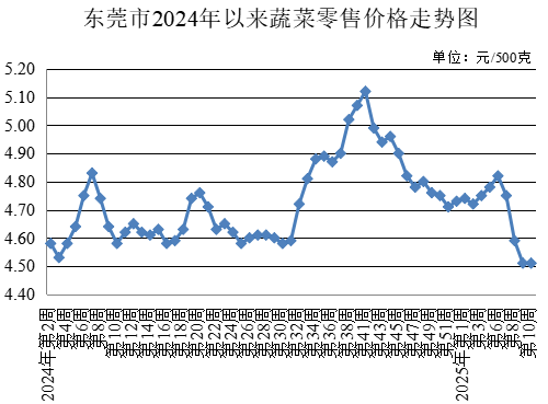 第10周,所監(jiān)測的30種蔬菜農(nóng)貿(mào)市場零售均價為每500克4.51元,與上周持平。其中,13種葉菜類農(nóng)貿(mào)市場零售均價為每500克4.54元,較上周上升0.67%。17種非葉菜類農(nóng)貿(mào)市場零售均價為每500克4.49元,較上周下降0.44%。